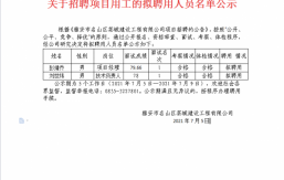 雅安市名山區茶城建設工程有限公司及其下屬全資子公司根據發展需要,按照公開、公平、公正、競爭、擇優的原則招聘工作人員9名(其中:雅安市名山區茶城建設工程有限公司招聘6名,雅安市名山區東融建設投資公司3名)。現將有關事項公告如下:一、招聘崗位(一)茶城公司1.綜合部工作人員1名(職位編碼20210101);2.財務部工作人員1名(職位編碼20210201);3.工程部工程技術人員1名(職位編碼:20210301);4.工程部工程師1名(職位編碼:20210302);5.工程部項目專員1名(職位編碼:20210303);6.工程部勞務專員1名(職位編碼:20210304)。(二)全資子公司東融公司1.綜...