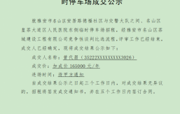 一、基本情況安居路德福社區(qū)與交警大隊(duì)之間(約10000平方米,已完成水泥地面硬化約5000平方米,其余為碎石硬化)、皇茶大道區(qū)人民醫(yī)院東側(cè)(約6200平方米,已完成水泥地面硬化)兩處臨時停車場,已完成配套道閘、監(jiān)控、門衛(wèi)室、廁所的建設(shè)。上述兩處停車場性質(zhì)為臨時停車場,無固定使用時間期限,如遇政府對上述2處臨時停車場有新的規(guī)劃使用方案,則隨時由我公司收回交由相關(guān)單位進(jìn)行處置。現(xiàn)公司擬對上述兩處臨時停車場一并對外招租。二、招租要求(一)承租方負(fù)責(zé)現(xiàn)場其設(shè)備設(shè)施的日常管理維護(hù),并承擔(dān)安全生產(chǎn)和安保責(zé)任,負(fù)責(zé)門前三包所有區(qū)域的衛(wèi)生管護(hù)。以上所產(chǎn)生費(fèi)...