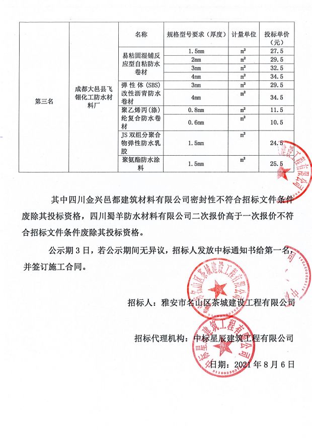 雅安市名山區茶城建設工程有限公司及子公司審查 采購詢價結果公告...