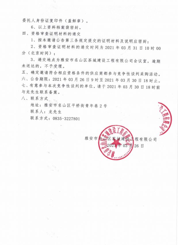 雅安市名山區茶城建設工程有限公司及子公司審查 采購詢價結果公告...